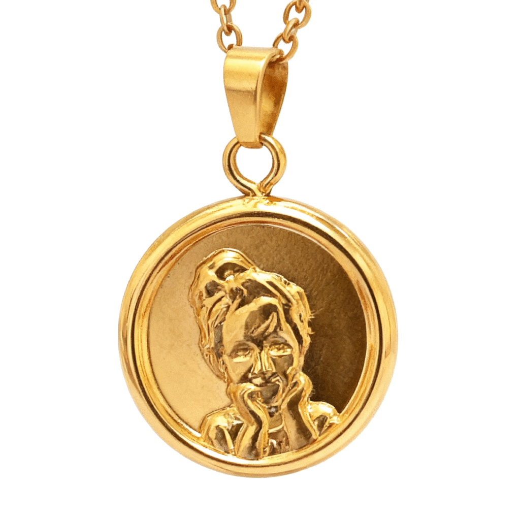 Reliéfny medailón z vašej fotky – luxusný 3D medailón pozlátený 24k zlatom, s portrétom detí, milovanej osoby alebo domáceho miláčika. Osobná spomienka a výnimočný symbol blízkosti.