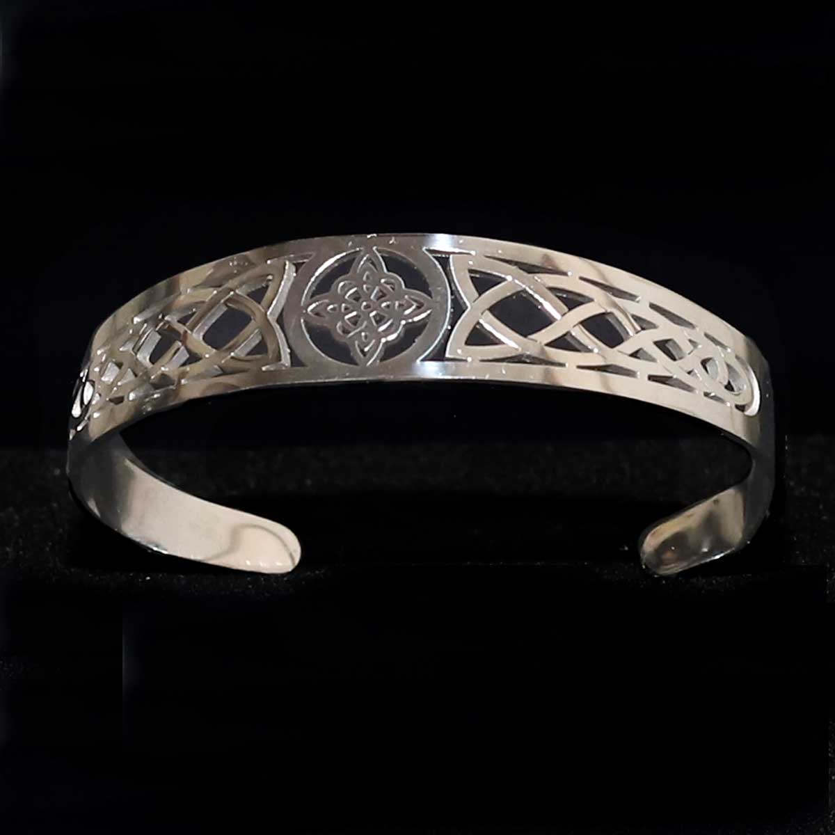 Tento lesklý náramok z nerezovej ocele zdobí detailne vyrezávaný keltský uzol – amulet ochrany, jednoty a rovnováhy. Vďaka nastaviteľnej manžetovej konštrukcii sadne pohodlne na každé zápästie. Elegantný a zároveň výrazný, vhodný na každodenné nosenie aj špeciálne chvíle.