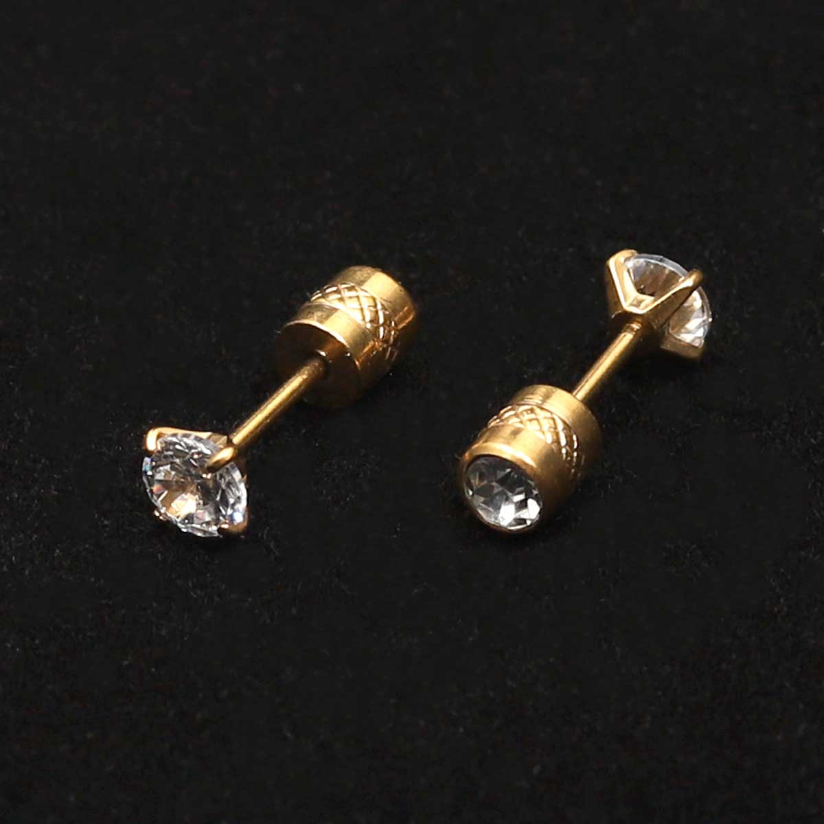 Elegantný pár náušníc zdobený syntetickým zirkónom a jemne vytlačeným kvetinovým vzorom. Ich špirálovitý dizajn s efektom vonkajšieho závitu zaujme na prvý pohľad. Vhodné ako darček aj ako štýlový doplnok na výnimočné príležitosti.