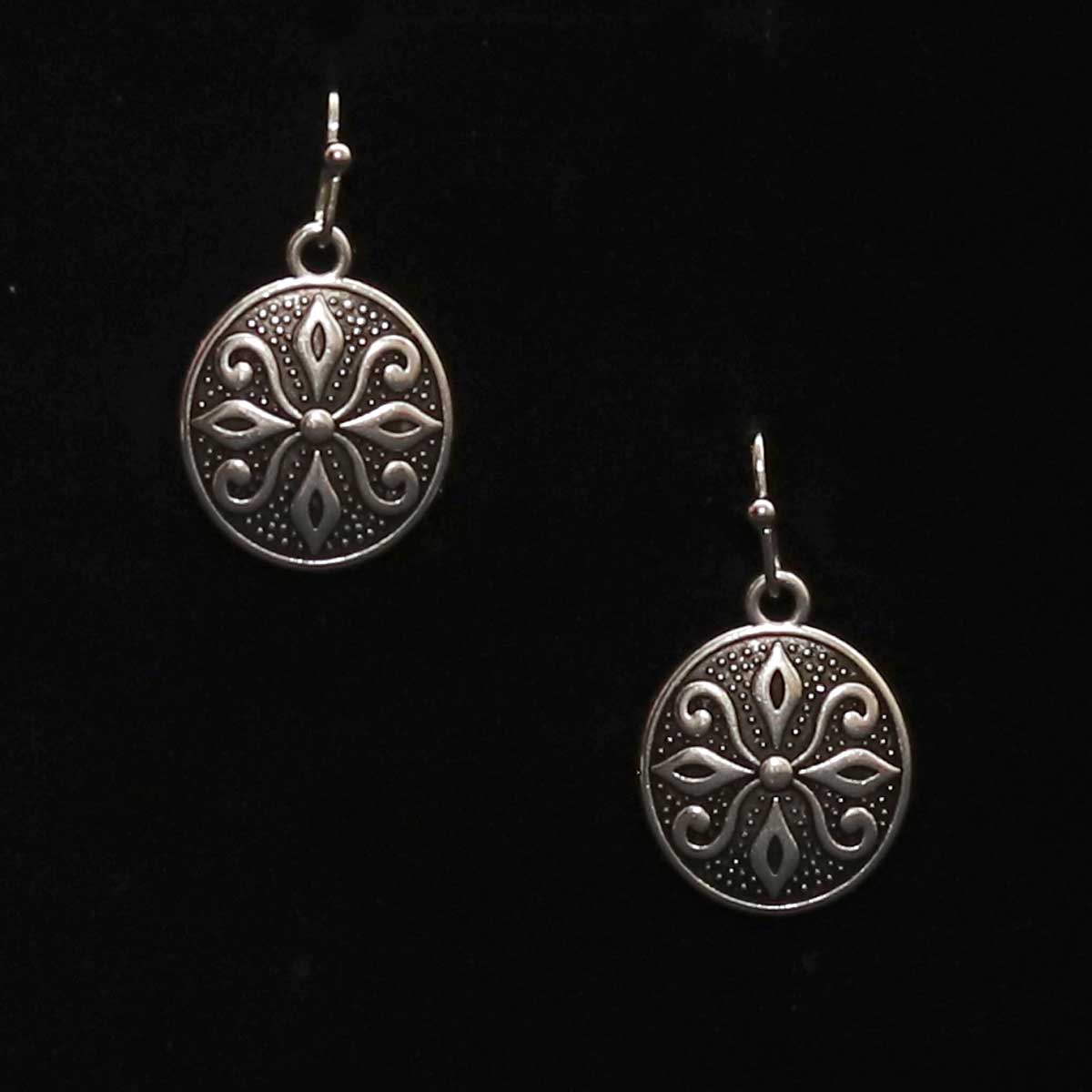 Tieto náušnice sú vyrobené zo zliatiny zinku a zdobené jemným vintage vzorom pripomínajúcim kvetinový ornament. Ich okrúhly tvar a detailné gravírovanie im dodávajú nadčasový šarm, ktorý vynikne pri každej príležitosti. Ľahké a pohodlné na nosenie, ideálne ako doplnok ku každodenným aj slávnostným outfitom. Skvelý darček pre milovníkov originálnych šperkov.