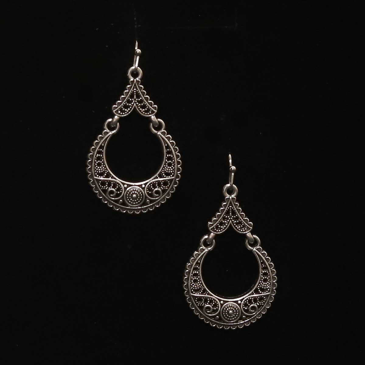 Jemné náušnice zo zliatiny zinku v elegantnom tvare kvapky, zdobené nádherným filigránovým vzorom pripomínajúcim rastlinné ornamenty. Sú ľahké, pohodlné a ideálne na každodenné nosenie aj špeciálne príležitosti. Perfektná voľba pre ženy, ktoré milujú jemné, no výrazné šperky.