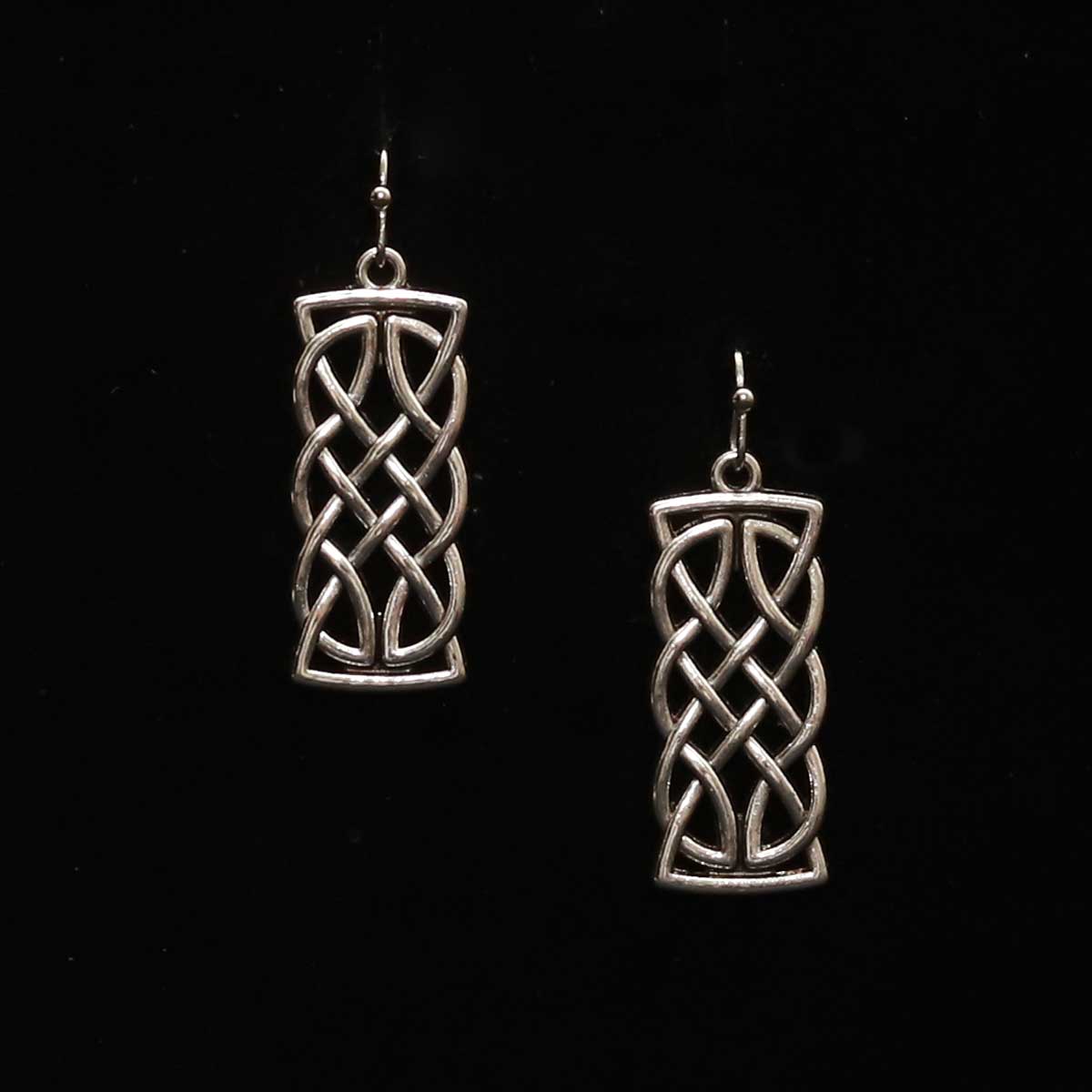Elegantné náušnice zo zliatiny zinku s prepracovaným keltským uzlovým motívom.