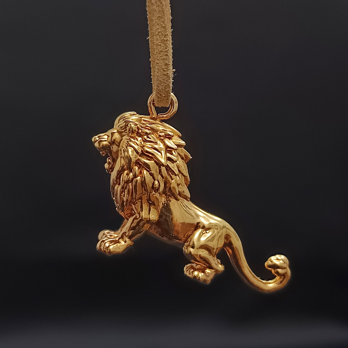Detailne spracovaný 3D prívesok leva, symbol odvahy, sily a ochrany. Ručne vyrobený s precíznou technikou, pozlátený 24-karátovým zlatom.