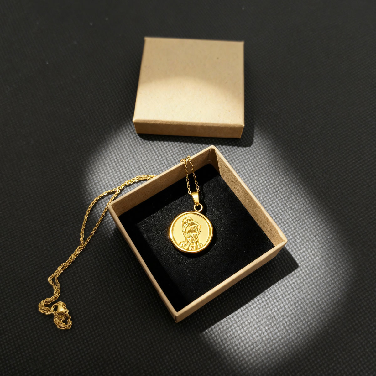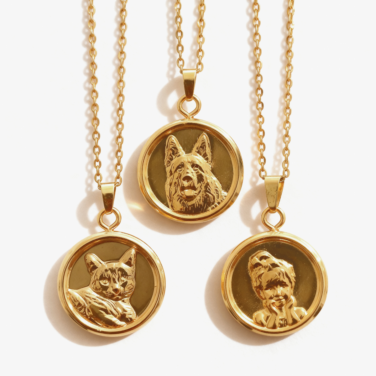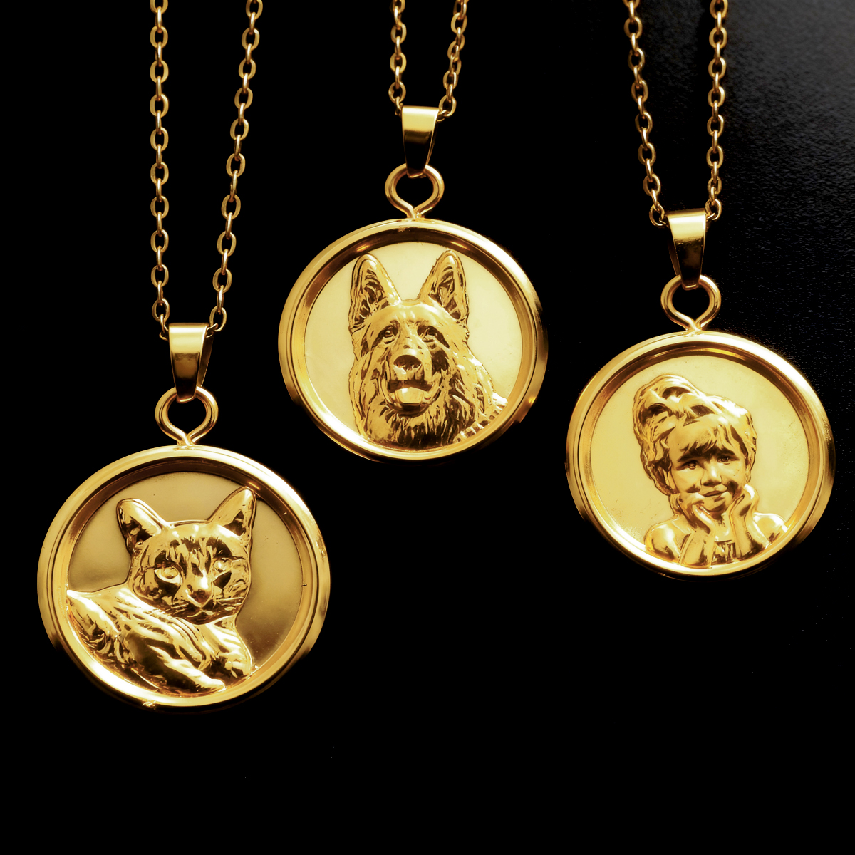 Reliefný medailón z vašej fotky je luxusný, ručne vyrobený medailón na mieru s 3D portrétnym reliéfom podľa vašej fotografie. Každý kus je unikátny a pozlátený 24k zlatom, aby pôsobil nadčasovo a exkluzívne.